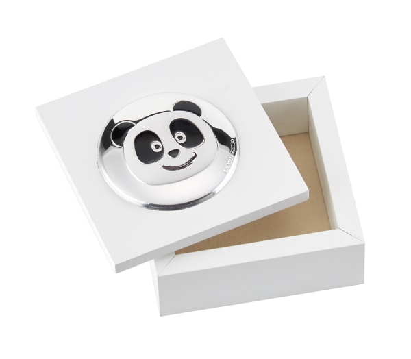 PORTA DENTINHO MADEIRA COM APLICAÇÃO REDONDA BILAMINADO PRATA PANDA PATINHAS