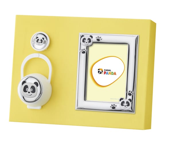 SET CORRENTE + PORTA CHUPETA + MOLDURA 9X13 PANDA PATITAS