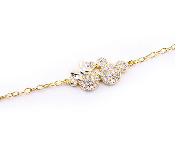 PUL DSN MICKEY MOUSE AG925 MICKEY E MINNIE ZIRCÓNIAS LAÇO DOURADO